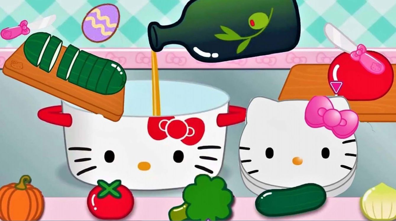 1、玩家选择自己喜欢的美食菜谱,然后跟着凯蒂猫进行制作操作。