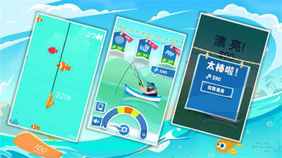 3、找到最舒服的钓法,你一定能钓到高分的鱼,像真钓鱼一样操作,游戏为全触屏操作。
