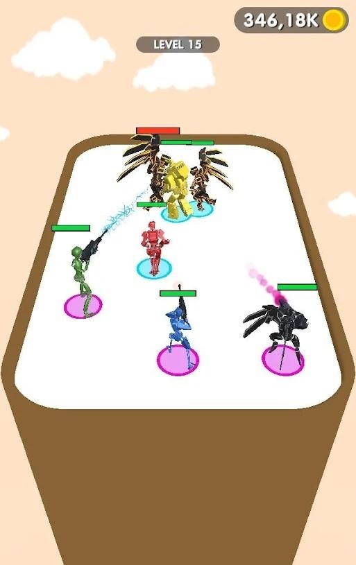 合成升级:玩家可以通过合成和升级机甲大军,增加胜率和实力,体验到不断提升的成就感。