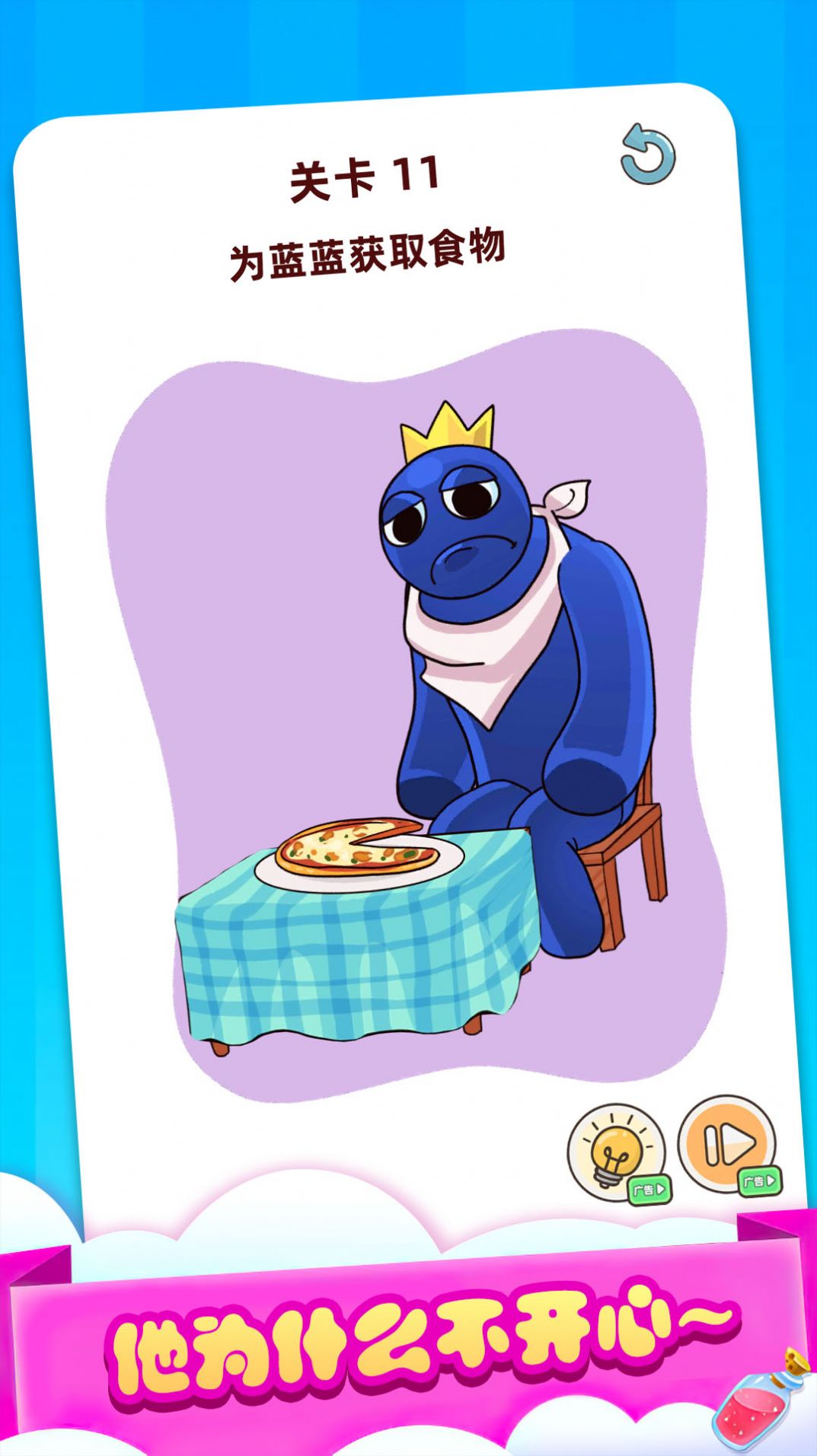 3、采用卡通角色的营造应战的放松,根据思考解锁不同的解谜方式。