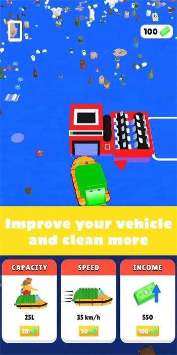 3、努力解锁更广阔的海域,逼真的海水特效,多种清洁船造型。