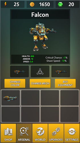 3、随时准备开始精彩的游戏,收集更多零件,在一次又一次的战斗中强化机甲。
