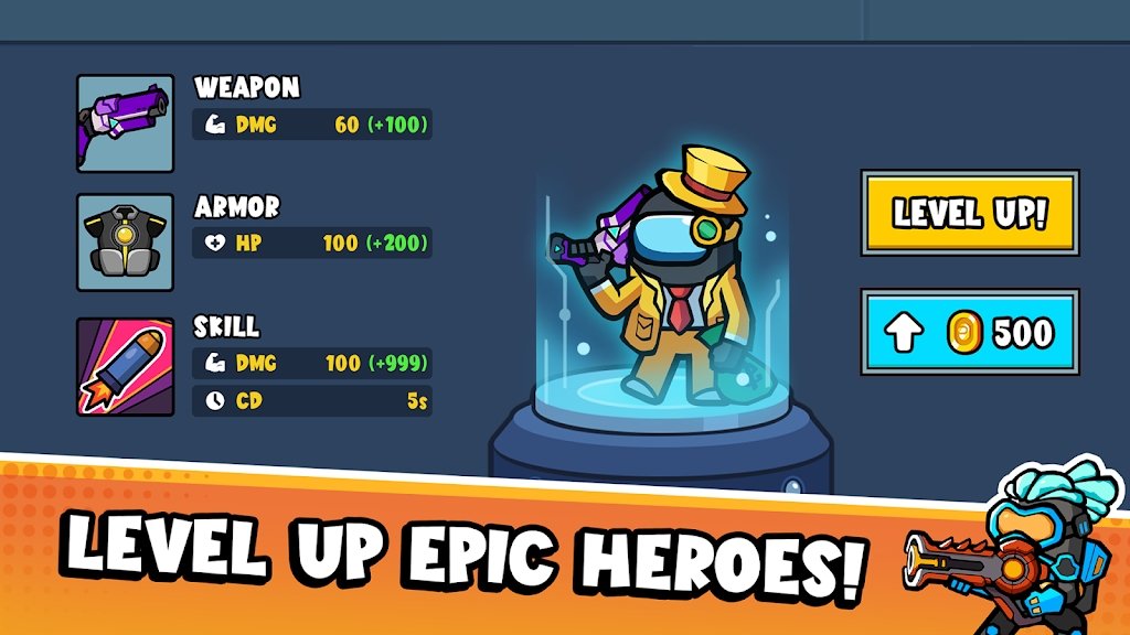 1、可以自由选择使用不同的主角,根据情况升级来提高自身实力,获取更多的奖励;