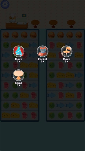 餐厅消除大亨玩家扮演一位餐厅经营者,通过消除相同的食物图标来经营和扩展自己的餐厅业务。需要在游戏棋盘上找到并点击相邻的相同食物图标,以消除它们并获得分数。玩家还可以使用游戏中的道具来帮助完成关卡,如炸弹道具可以消除一整行或一整列的食物图标,喜欢的小伙伴来试试看吧。