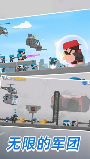 -在闯关模式中,玩家需要操纵自己的士兵们对敌方发起进攻,这个过程是十分紧张刺激的;