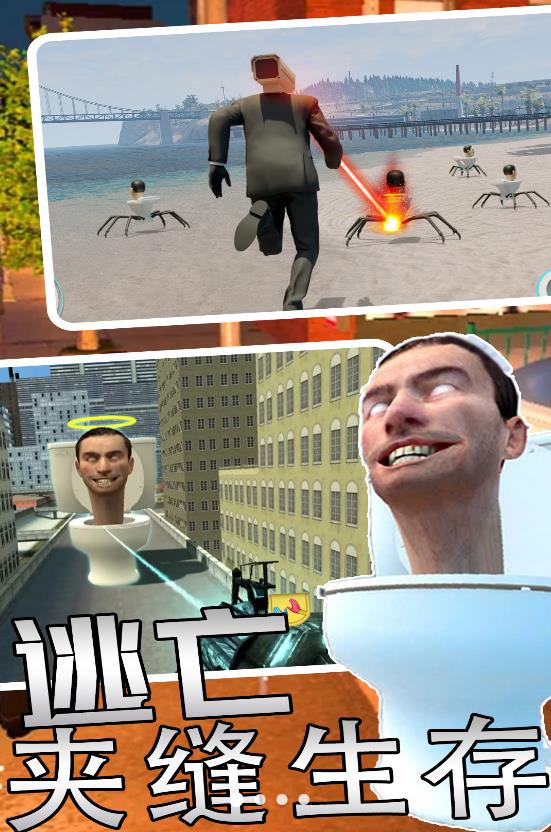 马桶人监控人逃离是一款全新的马桶人主题城市冒险大乱斗的游戏,这一次玩家将以监控人的身份,成为城市安全的守护者,需要通过即时战斗的方式,帮助解决城市中不断出现的,马桶人怪物,游戏玩法十分刺激,并且也是具有极强的玩法代入感,可以尽情解锁多种致命武器和强大的超能力,来消灭这些马桶人怪物。