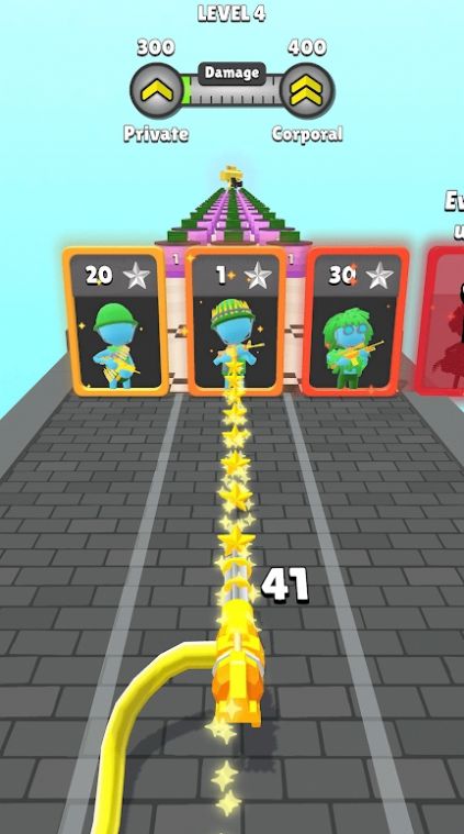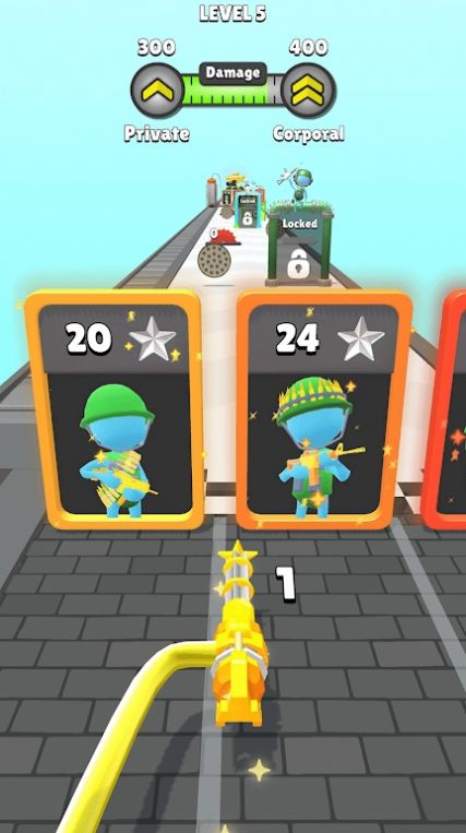 军队战斗跑是一个玩法节奏非常刺激的跑酷冒险闯关的游戏,其中的挑战性以及基础玩法都是十分轻松的,休闲娱乐的内容射击,结合更多轻松的精彩挑战,以更多有趣的操作方式,来帮助你解锁其中的精彩对决,游戏玩法精彩有趣,正确选择赛道中的增益屏障,并且利用凶猛火力,消灭所有的障碍,完成自己的闯关挑战即可。