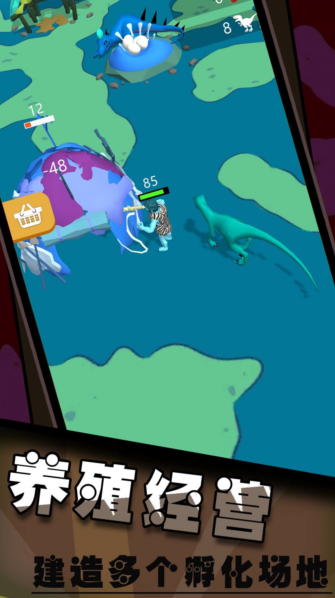 恐龙大作战激斗战争是一款3D卡通世界的宠物收集养成类游戏,玩家需要注意随时出现的恐龙,并快速抓捕它们,通过趣味养成的方式,制造出自己的宠物大军,你需要建设自己的养成基地,打造出更为安全的生存范围,同时也可以借助众多恐龙宠物的帮助,来战胜所有入侵的敌人,游戏玩法轻松有趣十分解压。