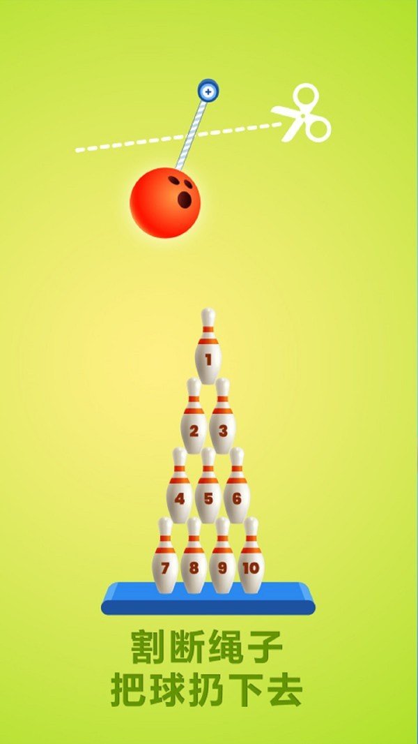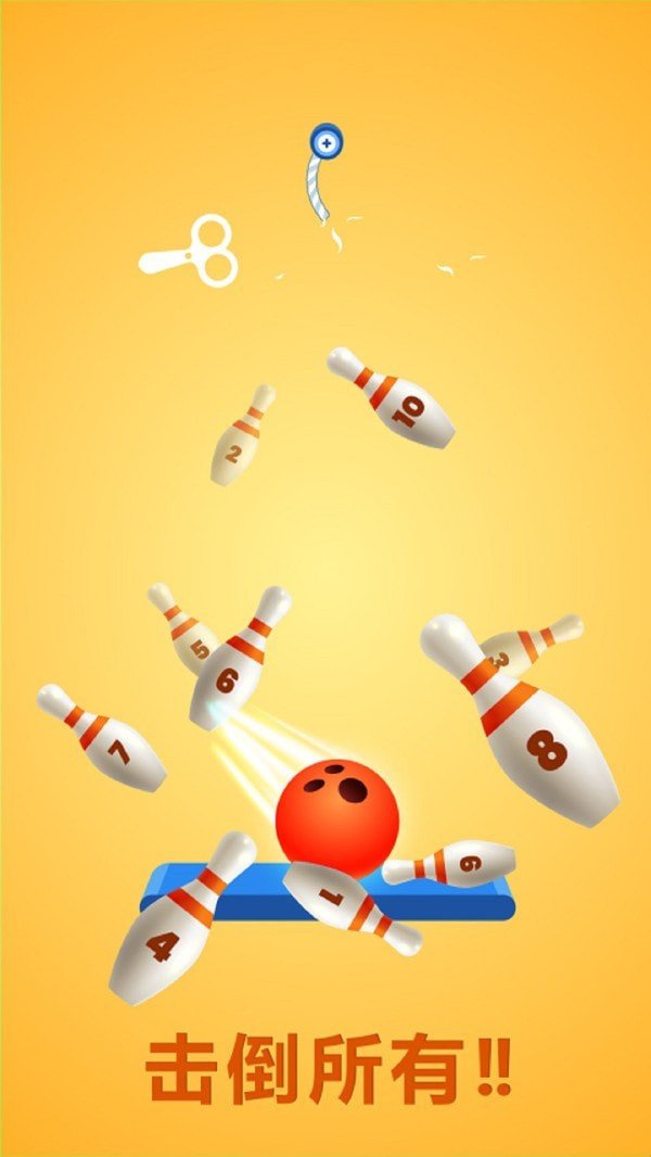 当你松开手指,保龄球就会下落撞击到球瓶。让你它自由滑动下去;