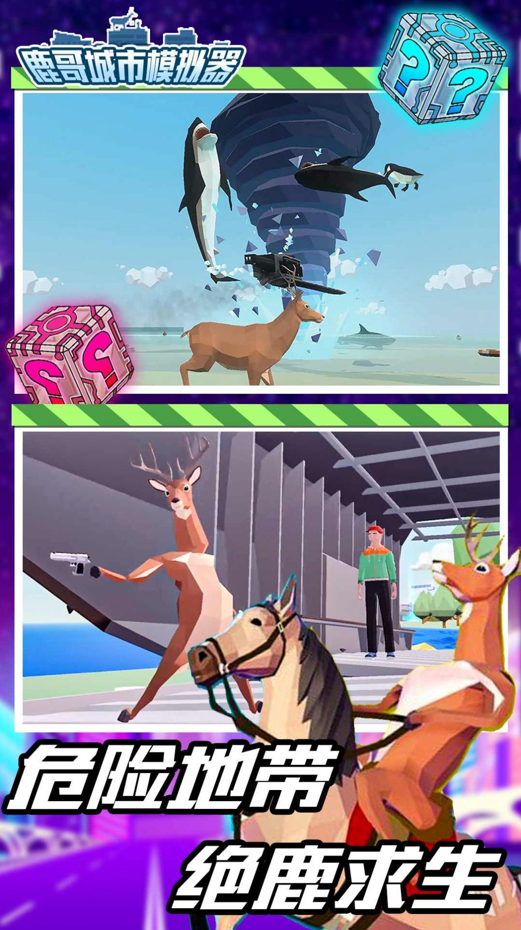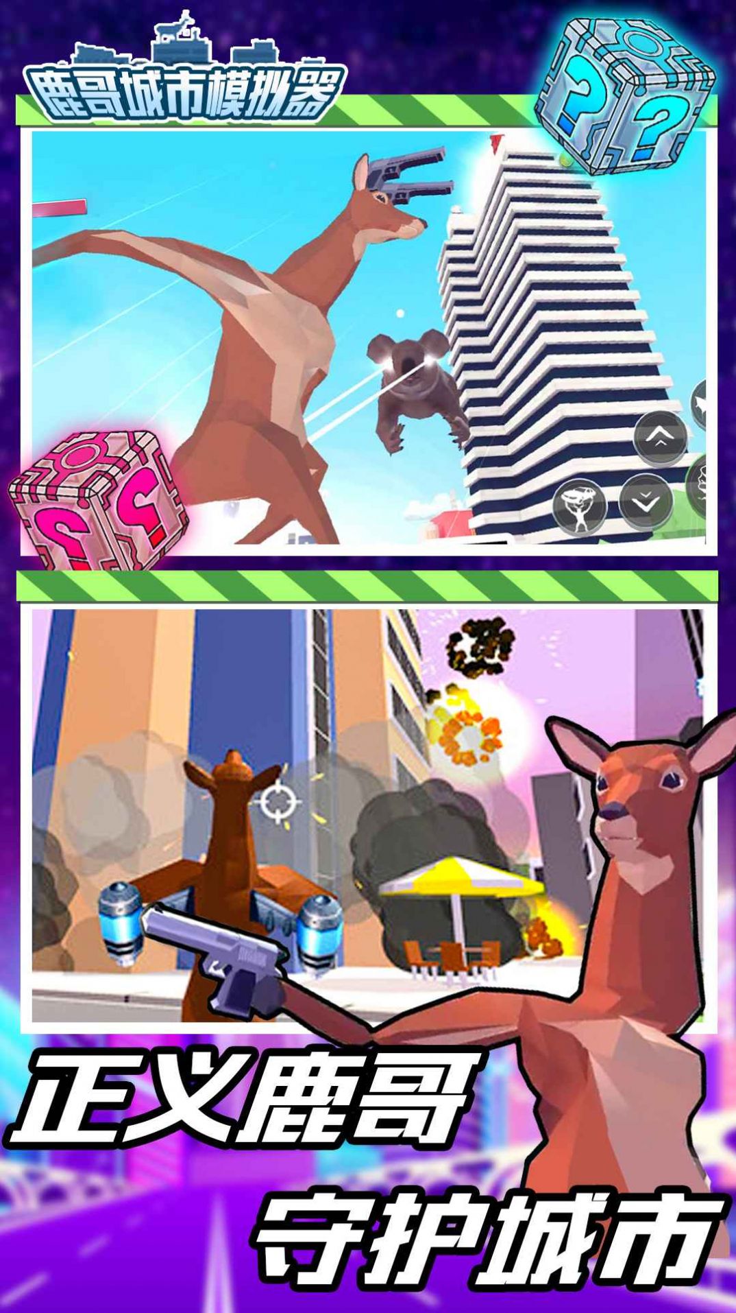 鹿哥城市模拟器内置菜单版是一个沙雕鹿开放城市大冒险主题的游戏,玩家将与战斗力强大的沙雕鹿,一起保护城市安全,可以尽情破坏和消灭城市中的敌人,并且可以全面展现其中高度自由的玩法设定,面对十分轻松的挑战模式,以及更多有趣的玩法挑战,可以让每一个玩家都实时参与到游戏的玩法过程中。