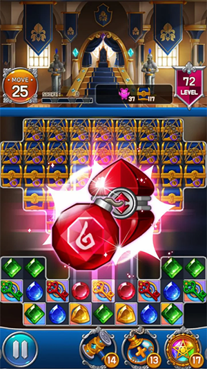 宝石皇家城堡趣味三消闯关主题的一个游戏,伴随着极强的代入感,其中的挑战性也是结合了无比精彩的游戏内容,会展现多彩的视觉效果,并且简单的消除合成玩法,也都能通过趣味十足的挑战,让玩家体验更多解压的玩法乐趣,超多华丽的宝石都可以自由消除,还有更多不同的道具选择,可以让玩家体验哦。