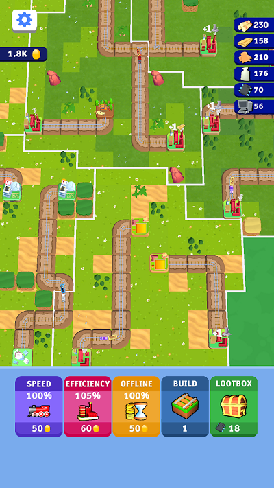 3、你可以自由选择区域来建造铁路,让火车能快速到达目标位置,控制好资源消耗;