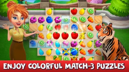 建立一个动物园,和可爱的动物一起玩,解决三消难题,三合一游戏!