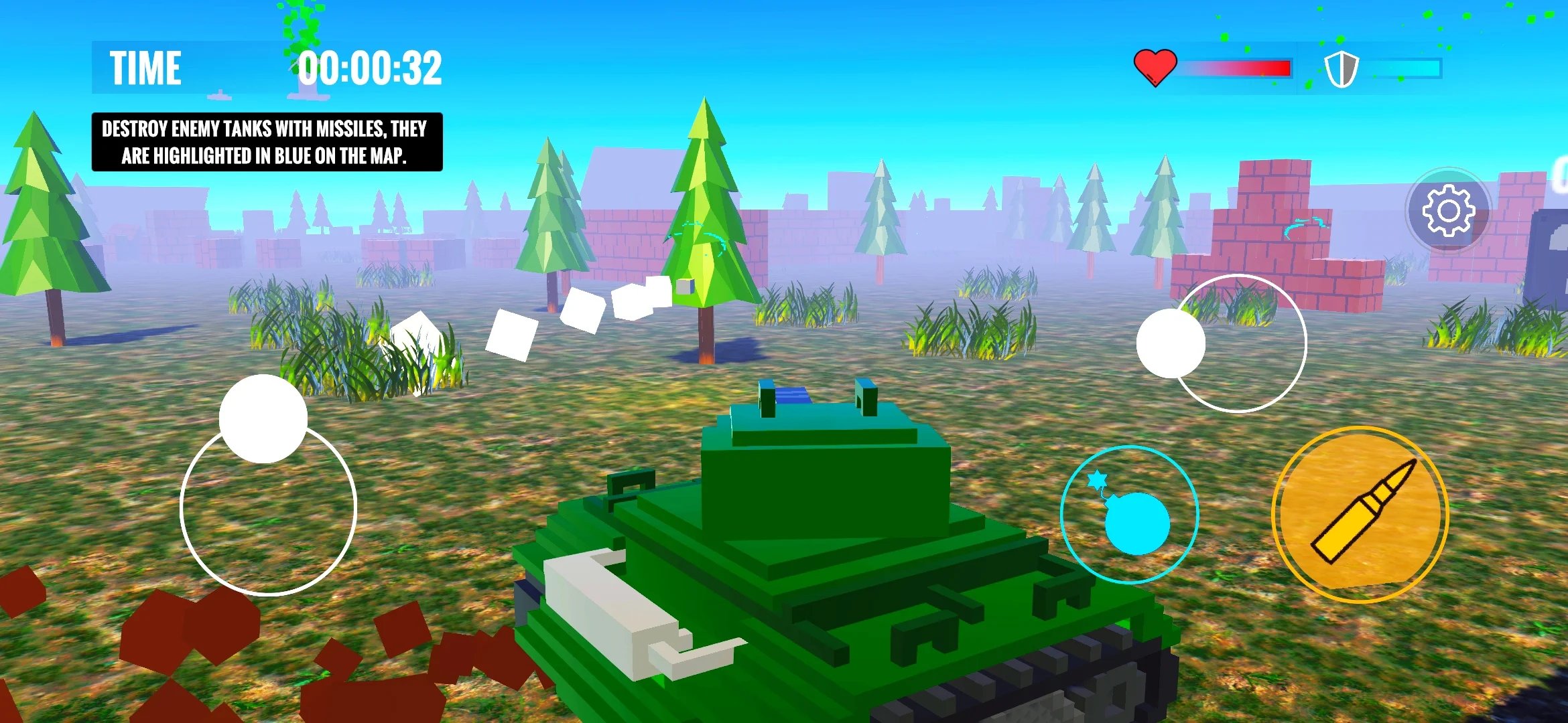 坦克世界战斗模拟器开放像素沙盒世界的疯狂坦克大战的游戏,其中玩法十分刺激,并且伴随着激情十足的疯狂对战玩法,开放3D战场的背景中,会以极高的自由度特点,让玩家驾驶坦克战车与敌人展开激烈对抗,游戏中的操作刺激,玩法吸引力极强,还有多种不同类型的坦克等你解锁,体验其中的热血征战。