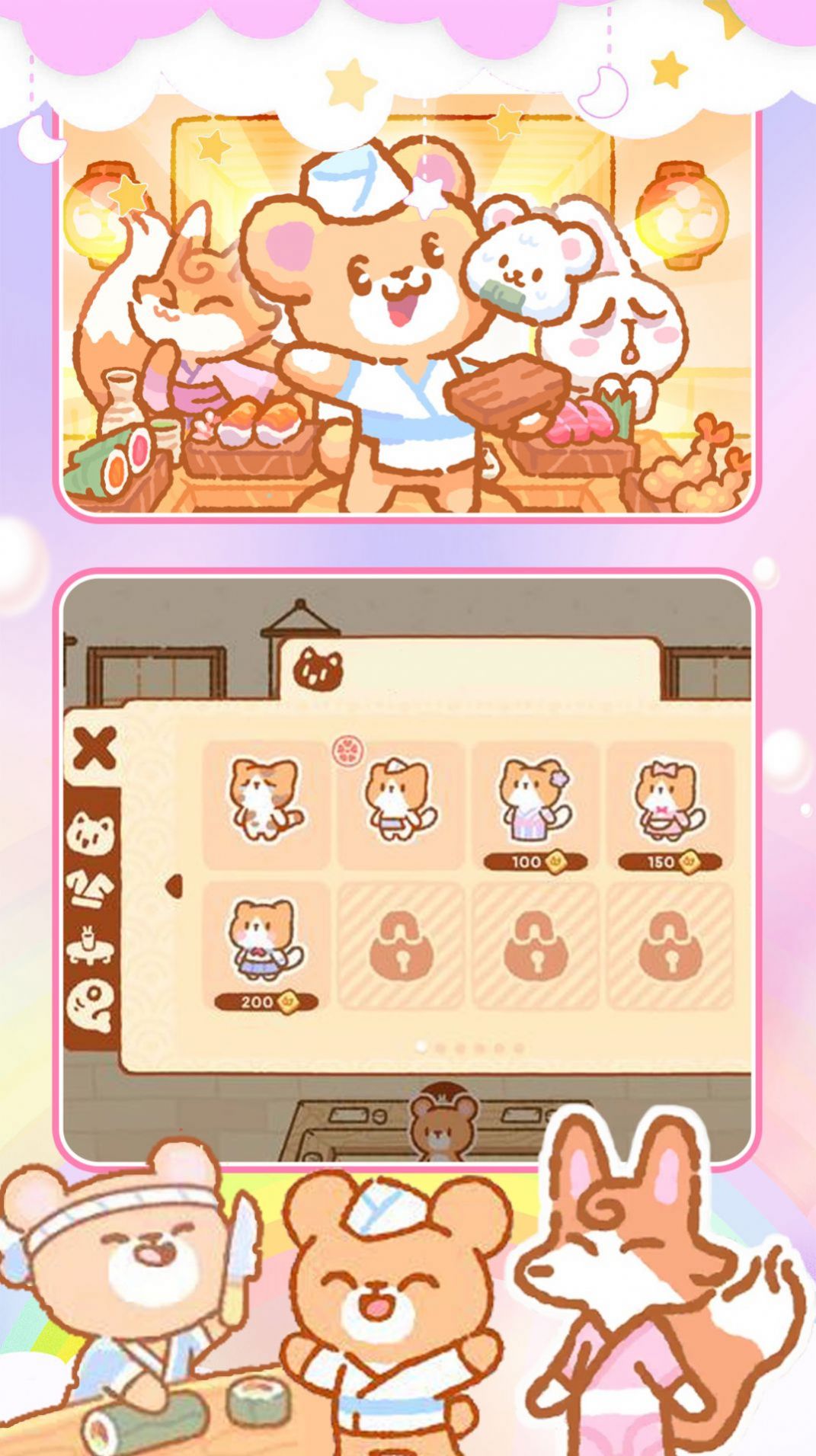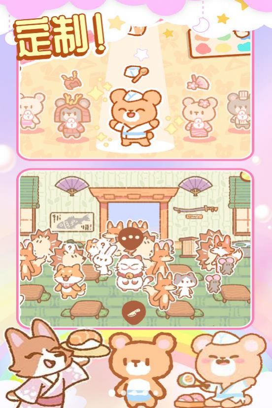 梦想寿司店模拟是一款Q版卡通店铺的模拟经营类游戏,采用放置挂机的玩法模式展开其中的精彩挑战,玩家需要负责完成店内布局,以及装修风格的调整,商业元素的融入,增添游戏玩法的吸引力。需要玩家通过对简单玩法的经营和持续养成,合理发展自己的寿司店,多个可爱的卡通NPC伙伴,也会与玩家一起更多的互动哦。