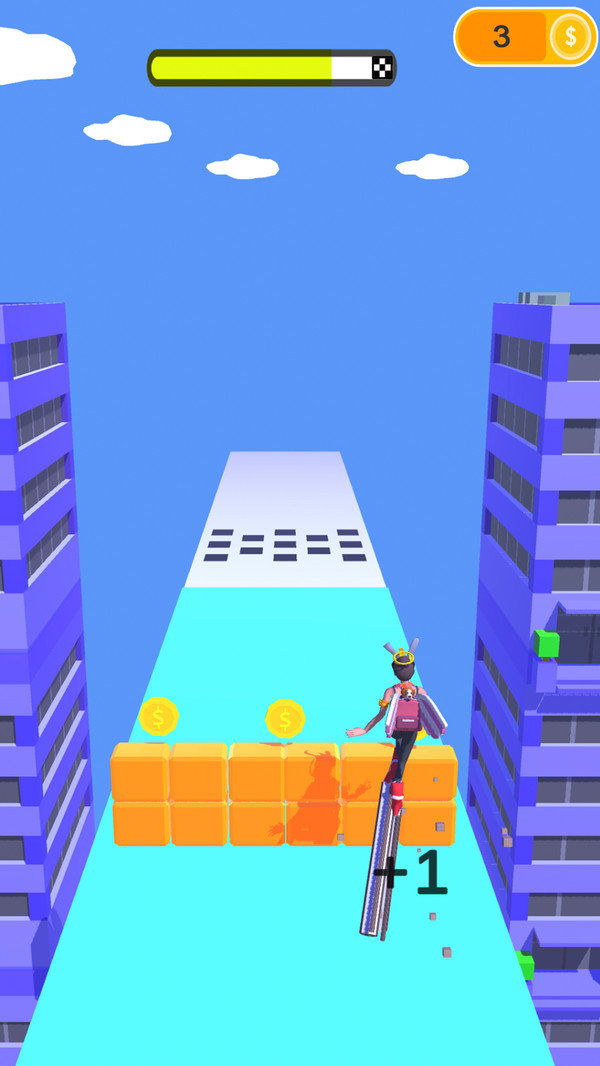 1、玩家控制人物在城市的各个环境进行溜冰前进,挑战各个关卡难度。