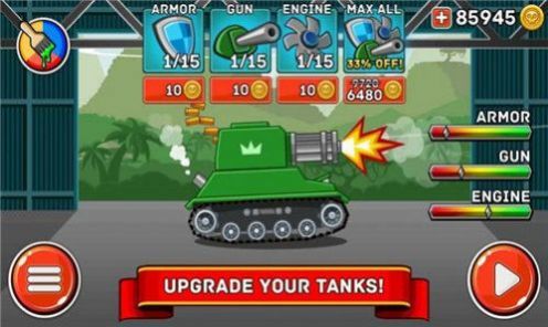 3.通过获得各种奖励,可在店内提升坦克的各项性能,提升坦克战斗力,成为战场上的最强者。