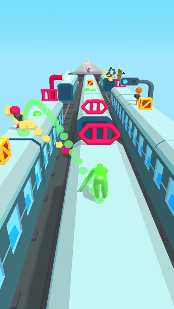 2.与对手的争夺是酣畅淋漓的,玩家不仅可以回收道具提升自己的实力,还可以通过发射果冻人将敌人消灭。