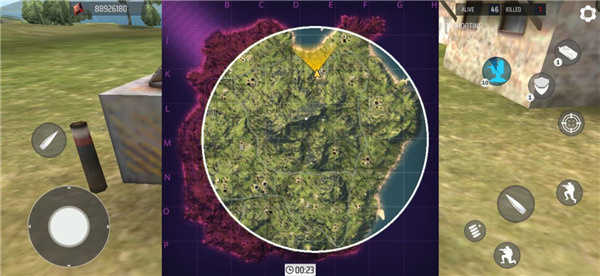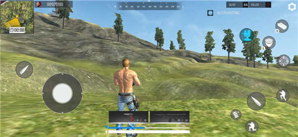 下来之后控制虚拟键让人物进行移动,并拾取地图的枪械武器来消灭其他对手;