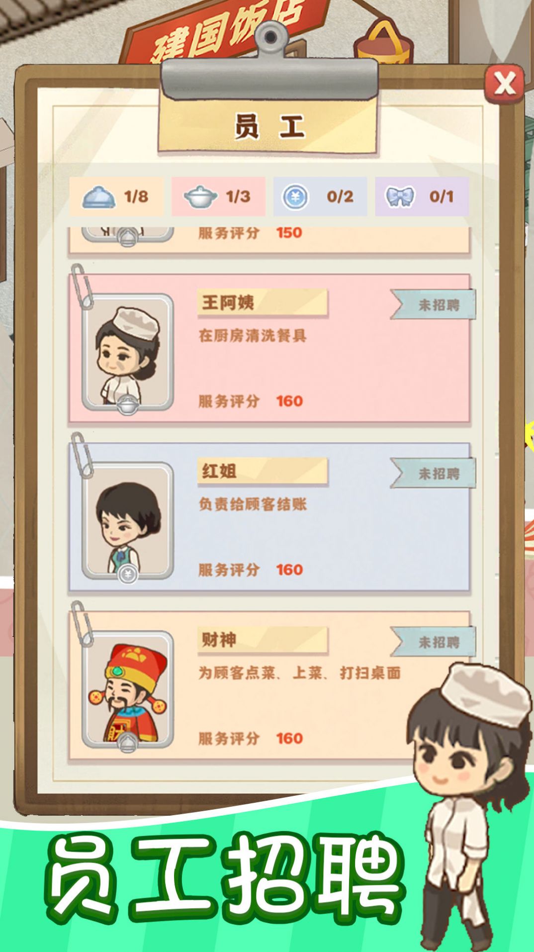 1、客栈内装修和招待客人是游戏的重要环节,聘请不同背景的员工提升服务品质;