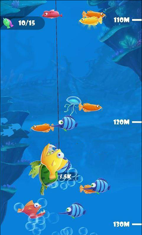 各种各样不同的美丽的鱼类等你解锁,你必须要不断的升级你的鱼竿潜入更深的海底;