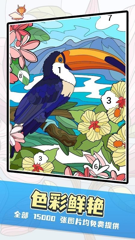 3.在不同的图案上填写颜色,完成不同的关卡,每一次都会给你带来不同的惊喜。