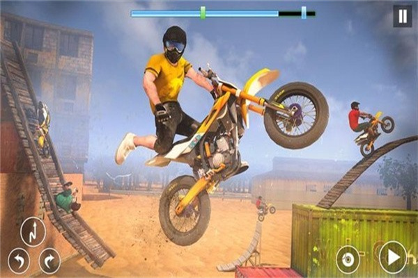 无畏特技摩托车手热血摩托车特技驾驶闯关的游戏,高难度的刺激行驶过程,会解锁更多内容丰富且玩法极为刺激的挑战,所有特技赛道,在展现各种障碍的同时,也会设置更刺激的陷阱,需要玩家灵活运用全新氮气动能系统,运用强大的引擎速度,彻底征服不同的赛道,让你感受激情十足的驾驶冒险和精彩挑战。
