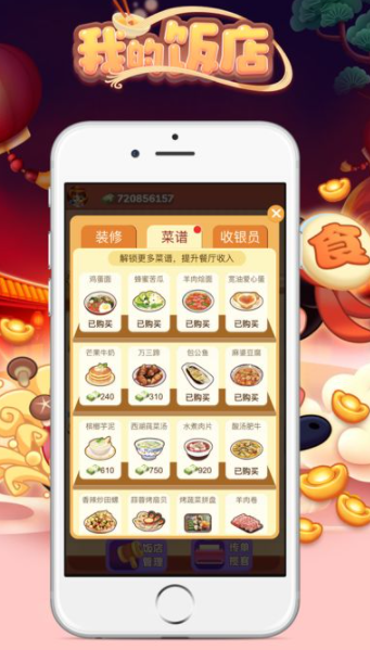 2.满足不同客人就餐需求,收获金币增强经营规模。