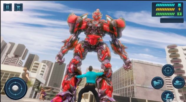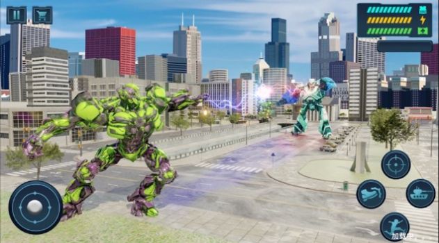 机器人战士的城市大战,会展现强烈的物理反馈,英雄角色的细节呈现非常炫酷,还有逼真城市战场背景在其中。