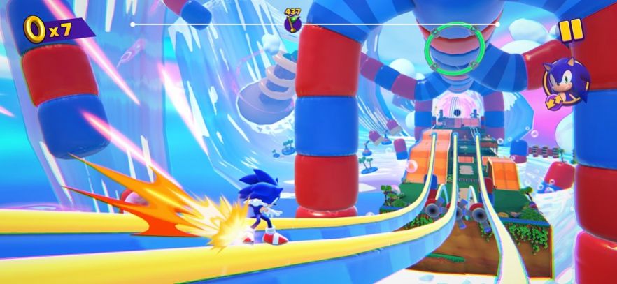 索尼克梦境小队是一个趣味十足的刺激跑酷冒险游戏,主角是玩家们熟悉的电光刺猬索尼克,玩家需要借助超级速度的辅助,在其中完成紧张带感的闯关冒险,以及更加激烈的多人竞赛对决等多种丰富玩法,游戏中采用奇幻梦境世界作为背景,玩家将沉浸在精致的3D卡通画风之中,利用超级速度不断挑战各种精彩的玩法模式。