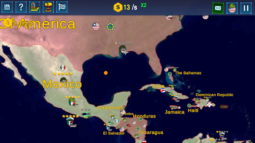 国家球世界大战模拟是一个充满魔性元素的放置战争策略类游戏,每一个球球都会代表一个国家,并且在不同的战局之中,也会展现非常符合时局的状况,玩家可以掌控强力军队,展开入侵和防御作战,玩家能够通过大量资源持续增强军队数量以及战斗力,还有更加激烈的世界大战模式等待玩家的解锁哦。