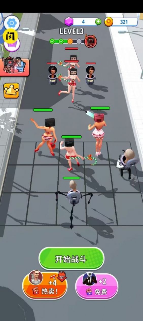 1、游戏的核心玩法是合并战斗,需要通过将不同的电视人合并来获取战斗力量;