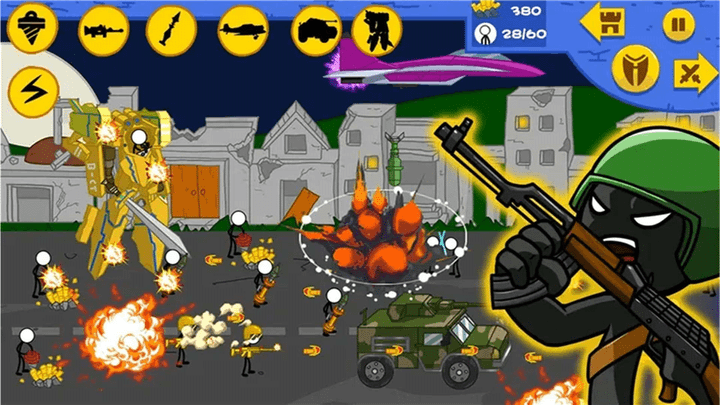 3、火柴人有不同的能力和擅长的攻击方式,玩家可以针对关卡的需求进行选择。