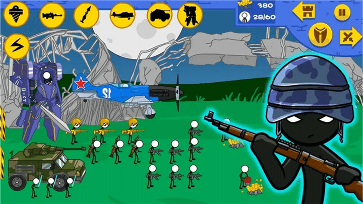 2、玩家将指挥火柴人勇士进行作战,游戏中有着各种士兵可供训练和培养的哦。