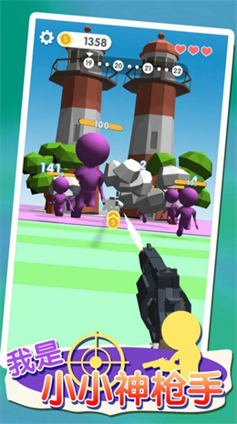 我是小小神枪手一款非常好玩的射击游戏,玩家可以选择自己喜欢的武器进行射击,丰富等级的玩家可以挑战,挑战成功会获得丰厚的奖励。级别越晚,难度系数越大。玩家还可以在游戏中解锁大量枪手的的游戏皮肤,游戏难度也可以随意选择,喜欢的小伙伴来试试看吧。