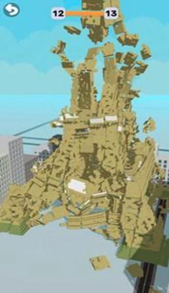 1.在撞击到物品后享受爆炸的游戏快感,炸毁所有的建筑物。
