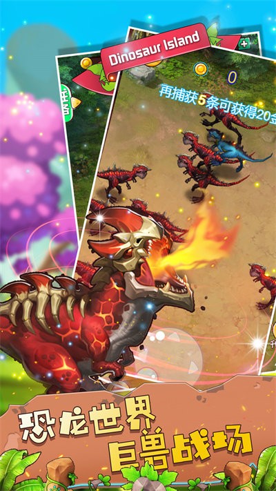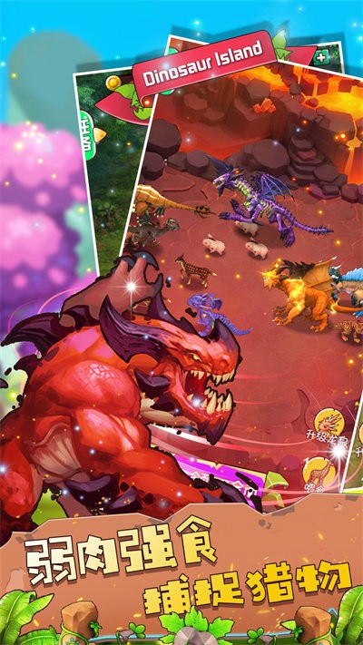 3、丰富的各种玩法,在巨兽战场里面不断探险吧,合成恐龙去进行狩猎吧。