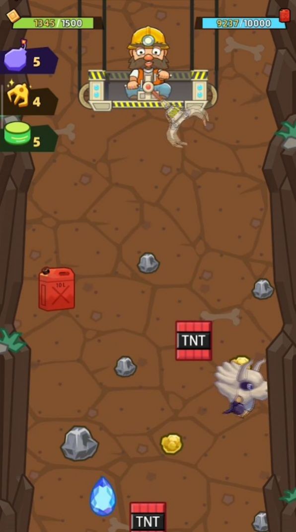 2、玩家们在游戏里需要去分辨抓取的矿石的价值,金矿的大小和类别的评分都不一样,同时必须要小心,别抓到游戏里的炸弹了哦。