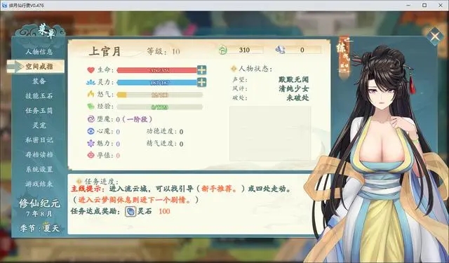 游戏开始时,玩家需要创建自己的角色。可以选择性别、脸型、发型、服装等,每个选项都会影响到角色的外观和属性。建议选择女性角色,因为女性角色的属性和技能更加平衡,适合修仙。