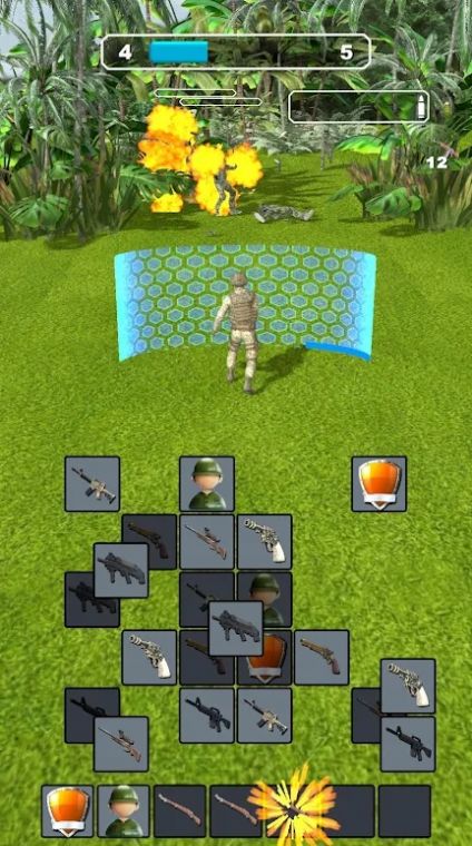 这个游戏的玩法创新元素非常丰富,拥有较强的可玩性,需要结合合成的方式,为玩家的士兵提供更多武器。