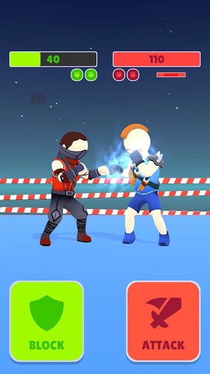 3、玩家角色拳击到对手一定地方可以得分,当分数越高越容易实现最终获胜。