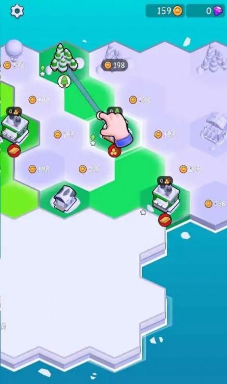 2、逐步建立起属于自己的帝国,融化每个六角形土地以扩张统治区域;
