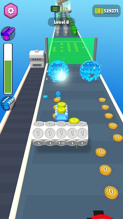 1、使用手指在屏幕上瞄准并射击金币,多样的,不同挑战;