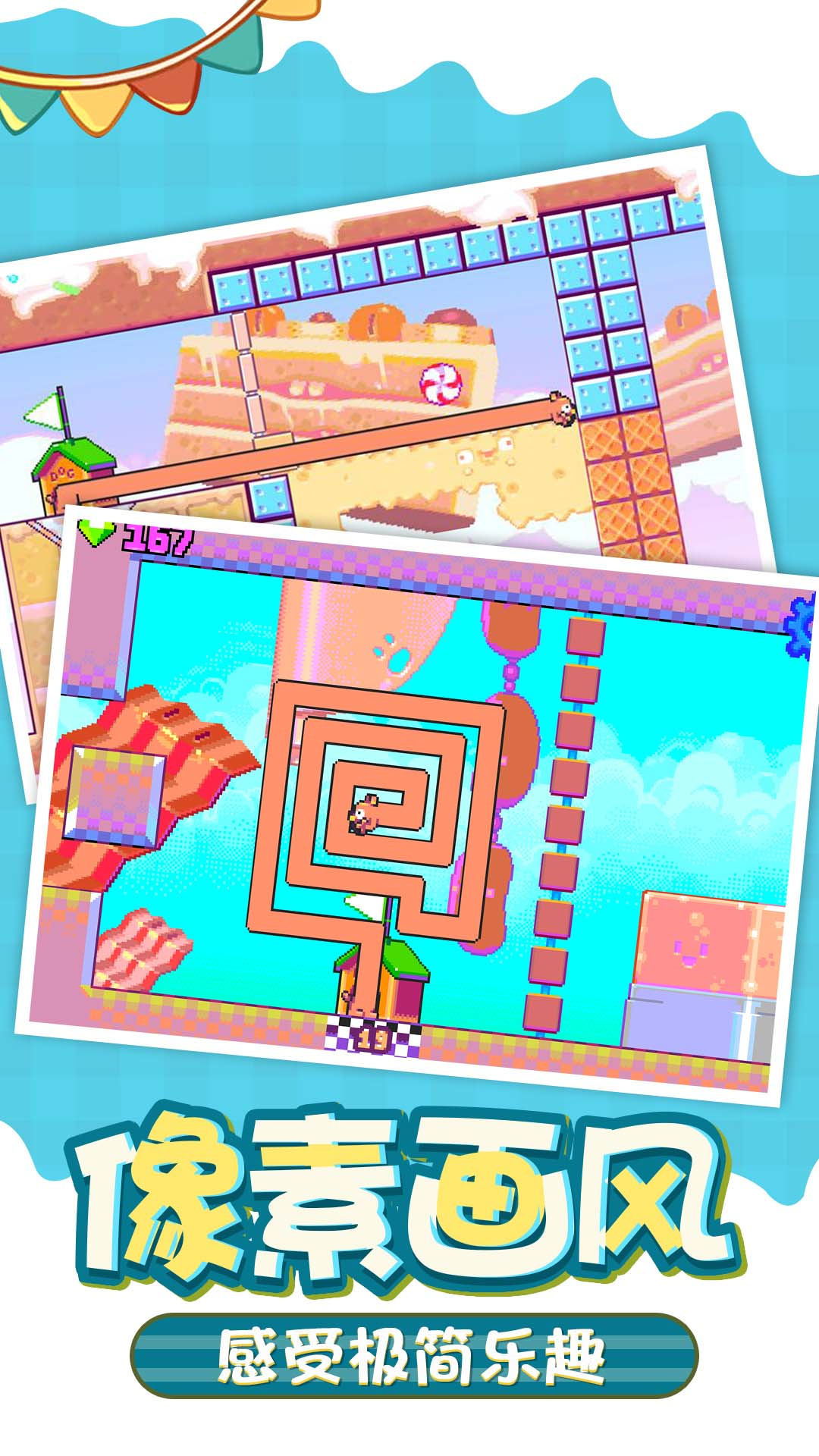 2、利用巧妙的操作技巧,让小狗在不同的场景中顺利通过;