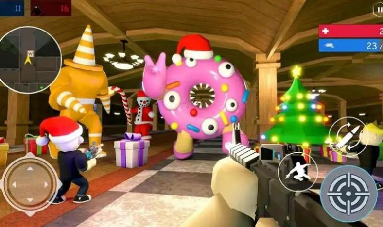 1、操作非常的简单,左侧控制移动,右侧控制射击,换弹和跳跃功能;