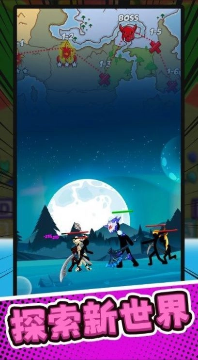 全新火柴人直接的热血征战,会通过不同的章节背景以及副本关卡,让玩家在其中展开更为疯狂的征战与冒险。