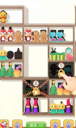 货架消消消(Triple goodsort)这款游戏主要是休闲闯关的类型,玩法采用了经典三消,玩家可以很快的上手,没有太大的难度,前面都简单,后面才会增加难度,提升难度之后玩起来也不会枯燥,随时随地都可以来一把哦!