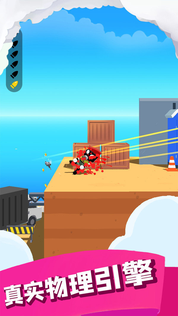 1.一款竖屏的射击冒险游戏,游戏采用了很经典的火柴人的形象,Q版的可爱的人物形象;