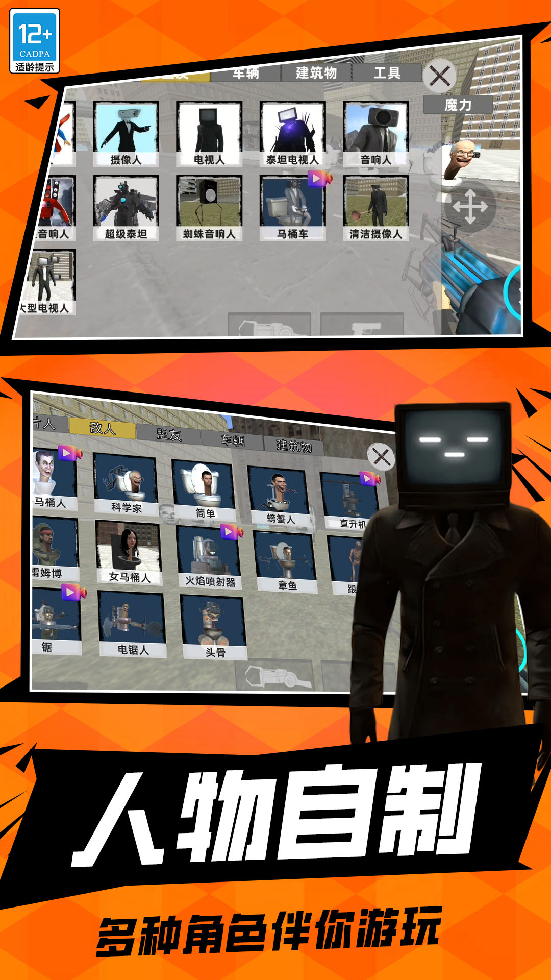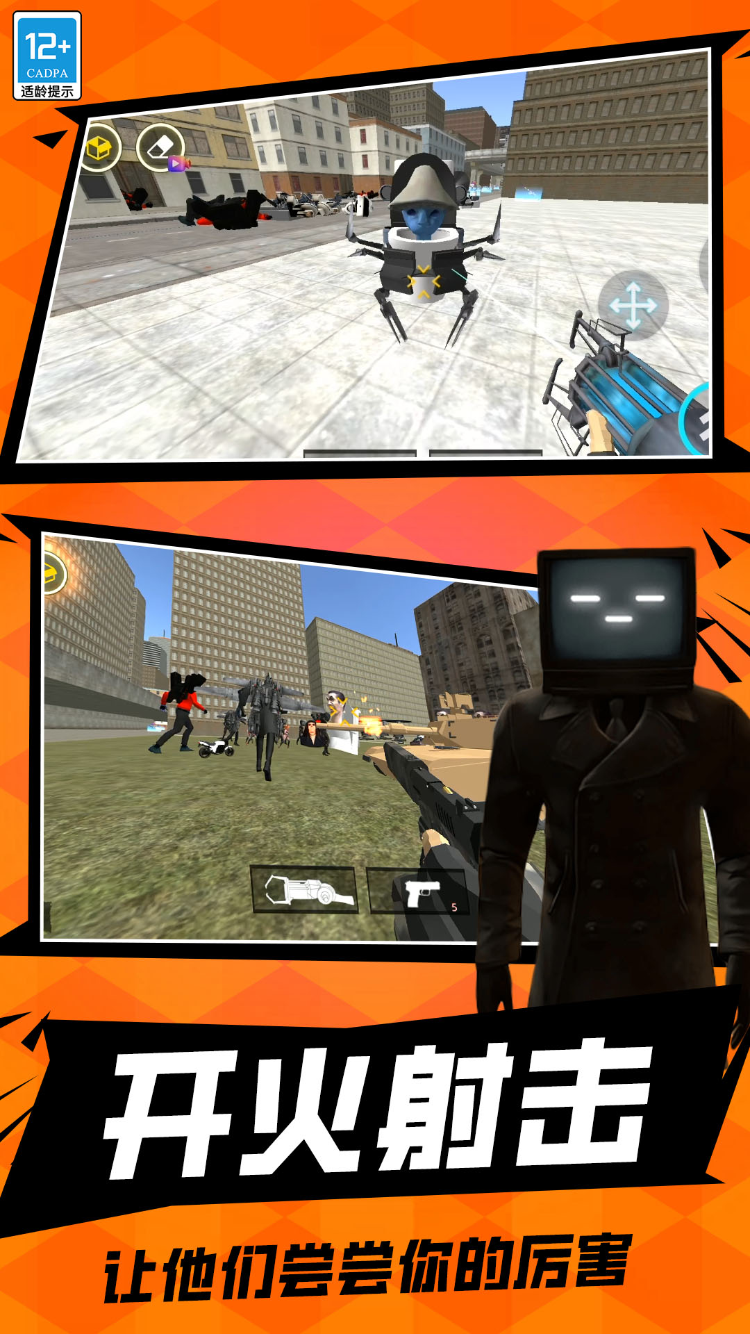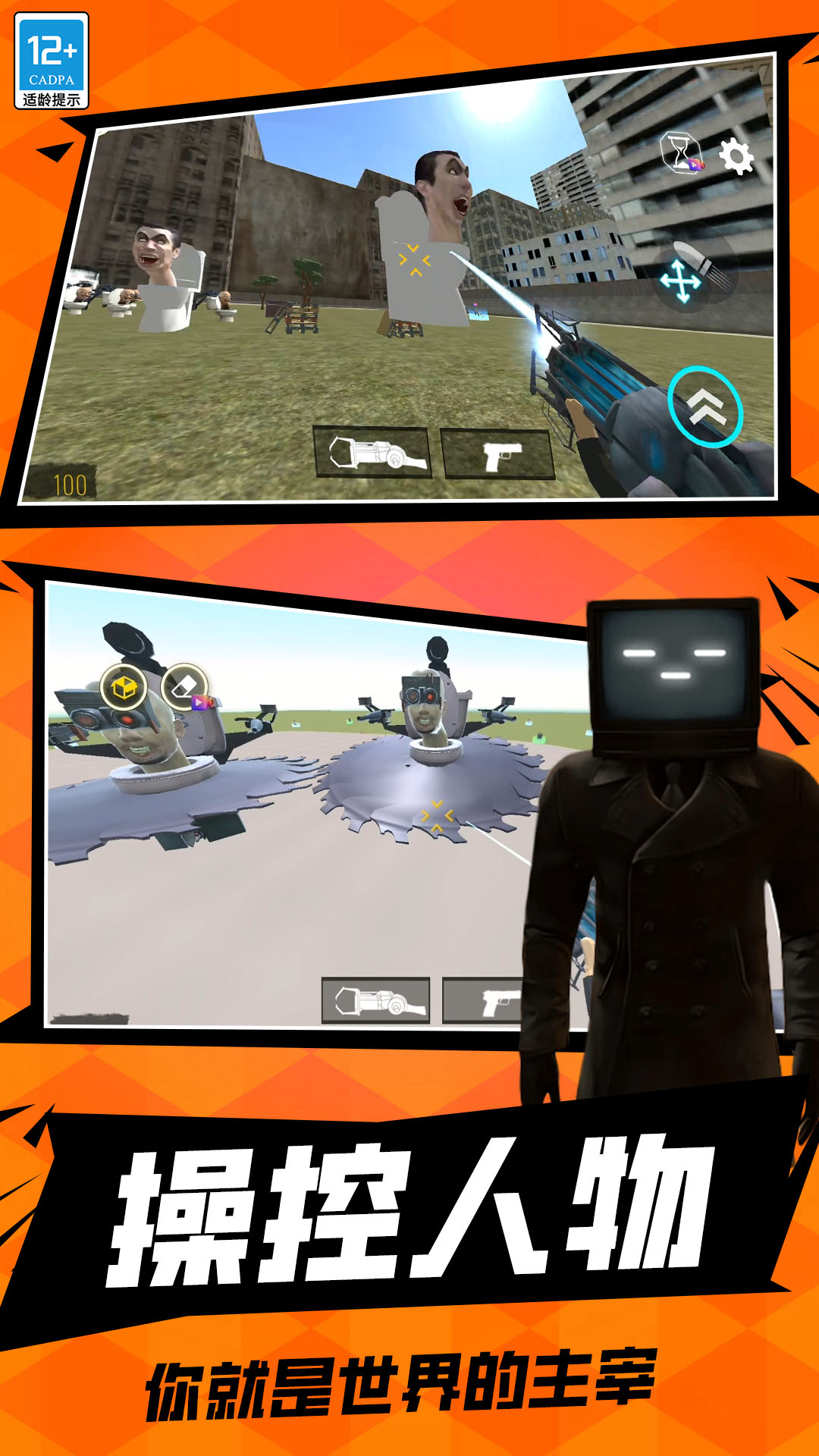 反恐生存模拟是一款经典厕所怪物城市大乱斗主题的游戏。不同的是这个游戏的自由度更高,玩家可以通过沙盒世界的编辑器解锁,尽情掌控所有的道具和角色建筑等元素,开放3D世界的背景中,会展现出足够的操作空间,玩家可以自由设计不同的角色,解锁全部车辆或者武器,体验毫无限制的刺激解压玩法。