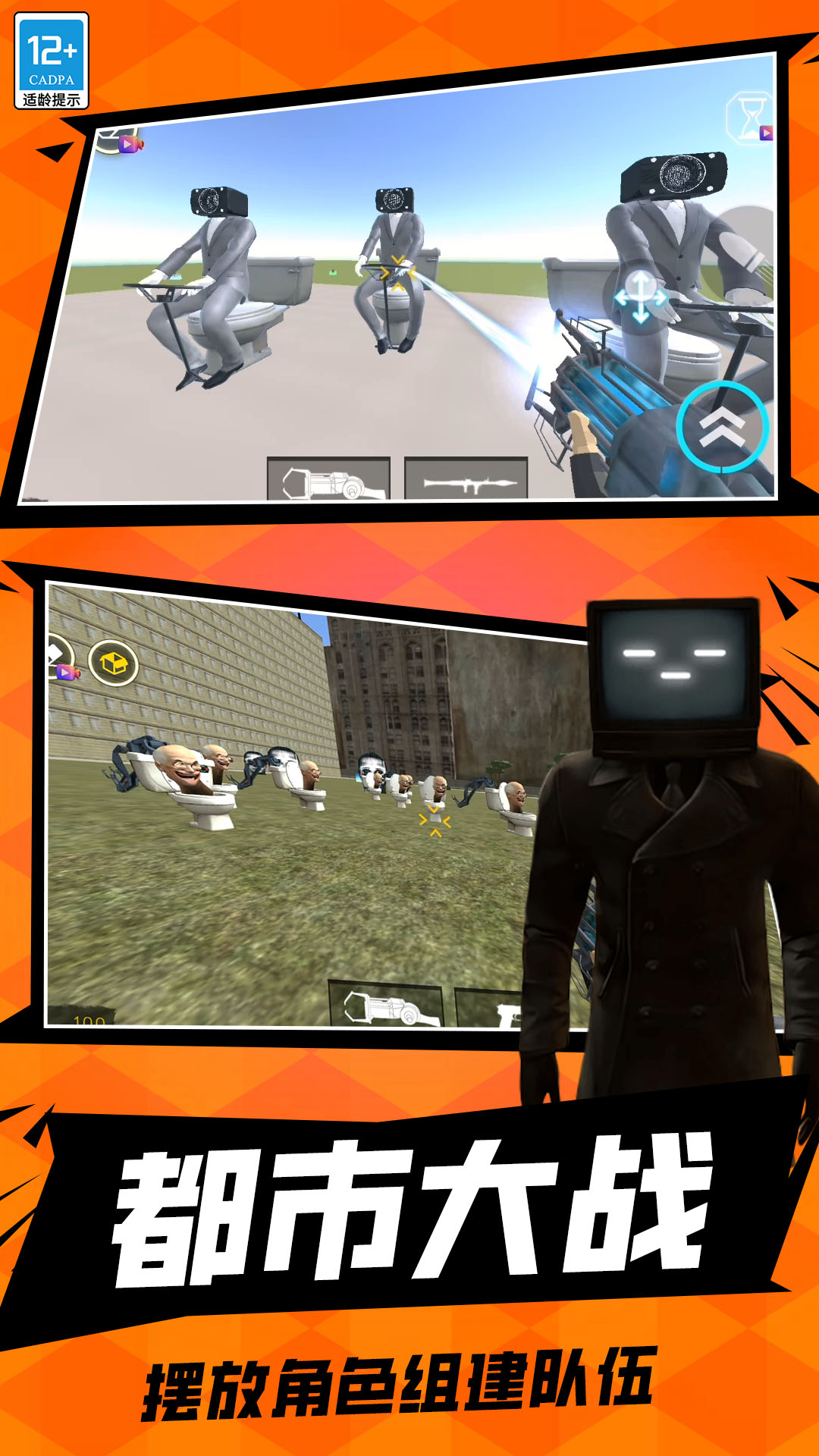 创新的游戏玩法,高度自由的挑战选择,毫无限制的城市大乱斗,也能让玩家自由操控所有厕所怪物。